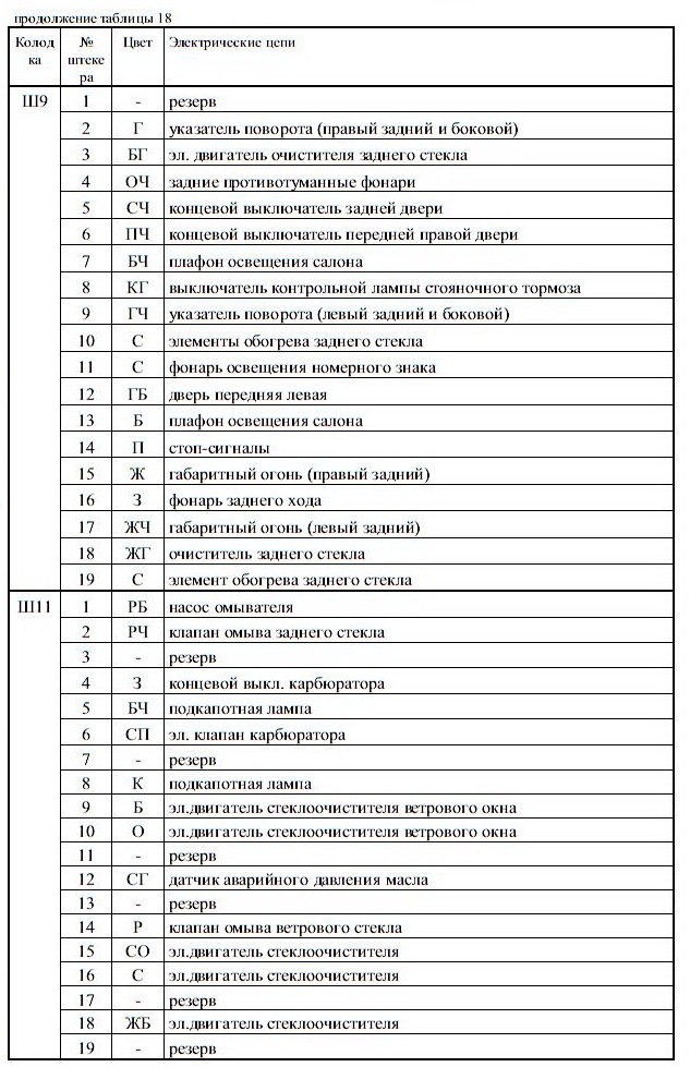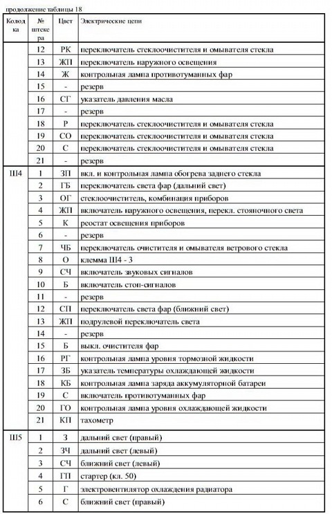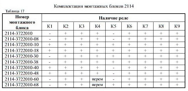 Таблица цепей, защищенных плавкими предохранителями на ваз 2114