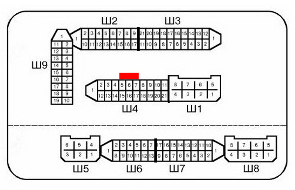 Нумерация штекеров в соединительных колодках монтажного блока ВАЗ 2113, 2114, 2115