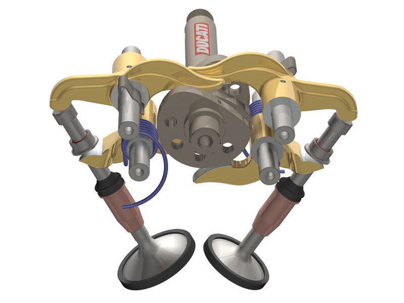 Десмодромная система устраняет эту проблему благодаря механическому управлению как открытием, так и закрытием клапанов. Это позволяет двигателю работать стабильно на высоких оборотах без риска потери контроля над клапанами.