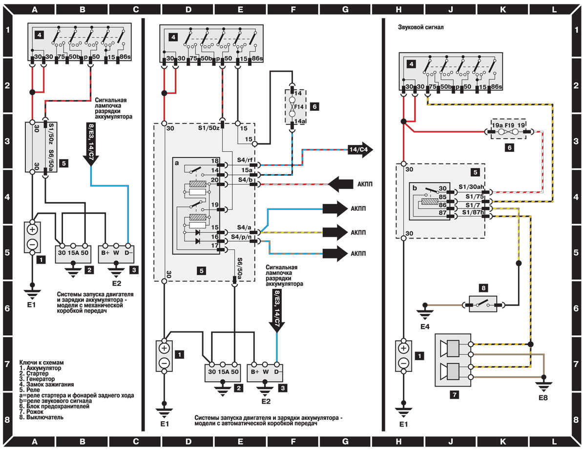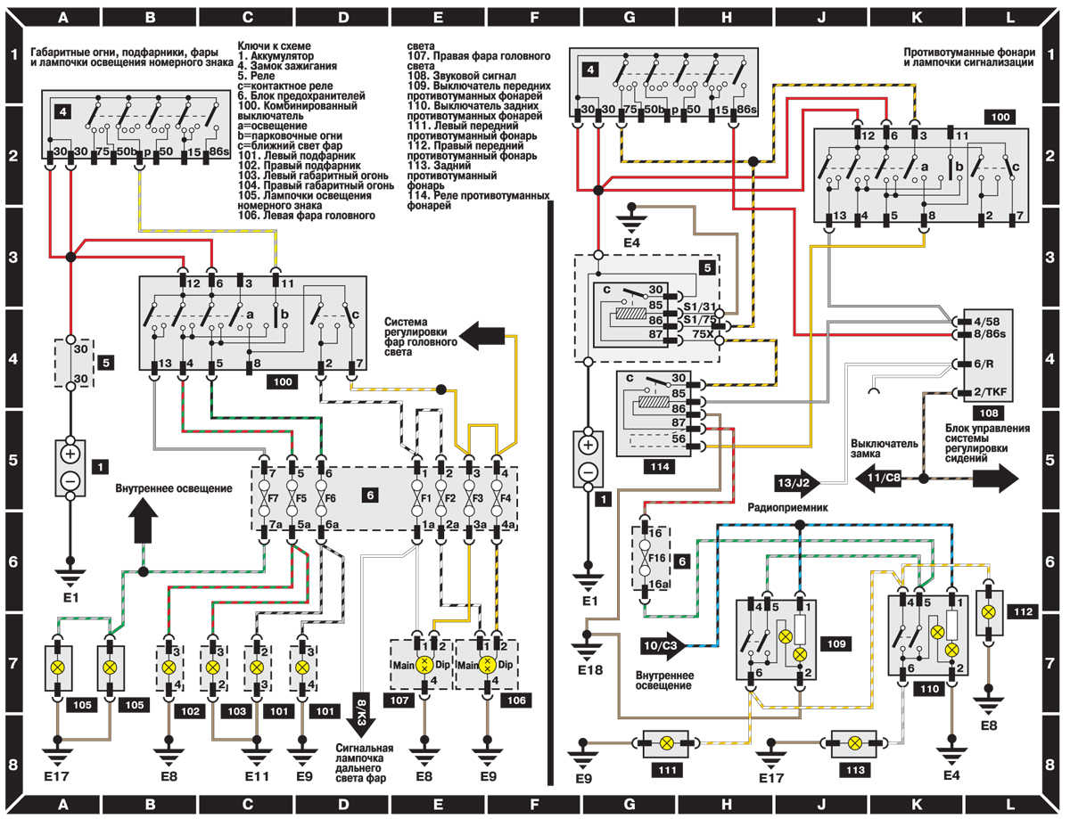 Электросхем для автомобиля Audi A6 (C4) 1990-1997 года выпуска.