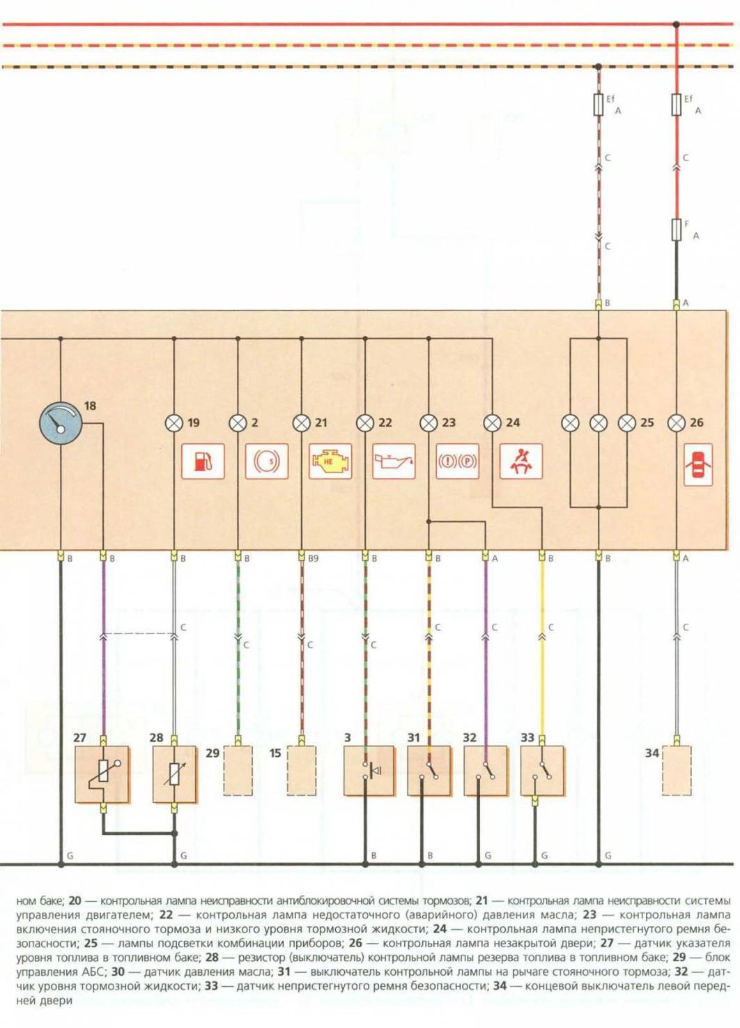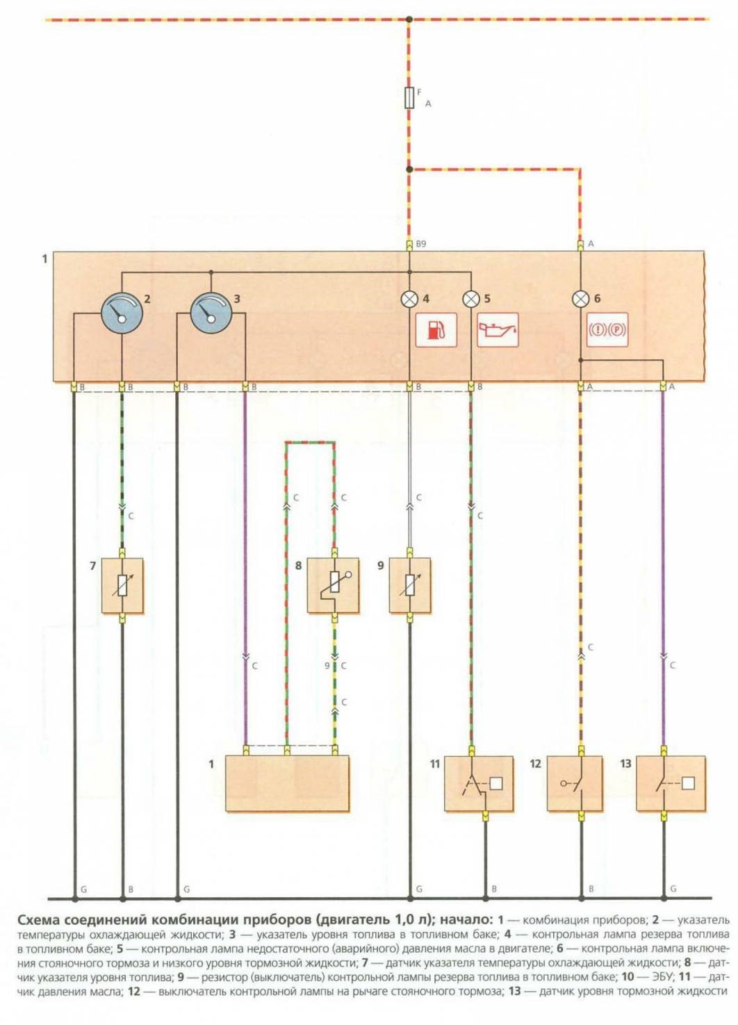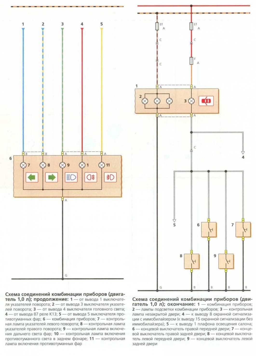 Электросхема содинений комбинации приборов Daewoo Matiz