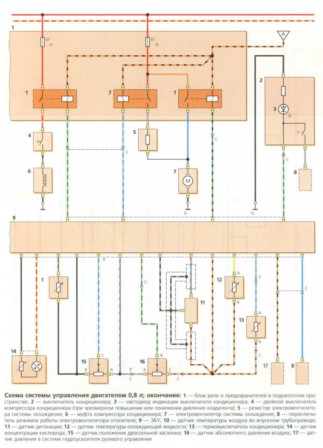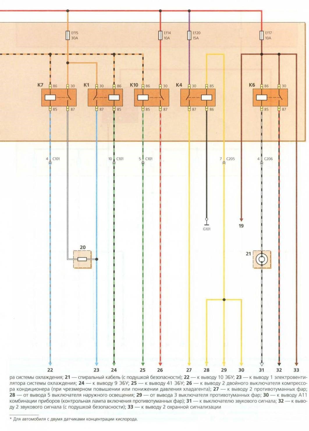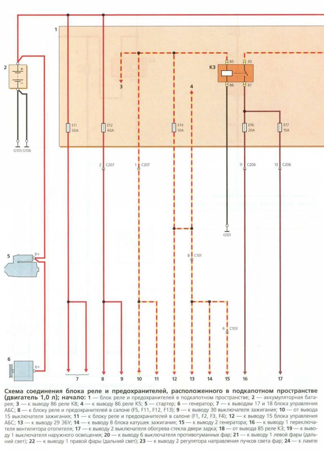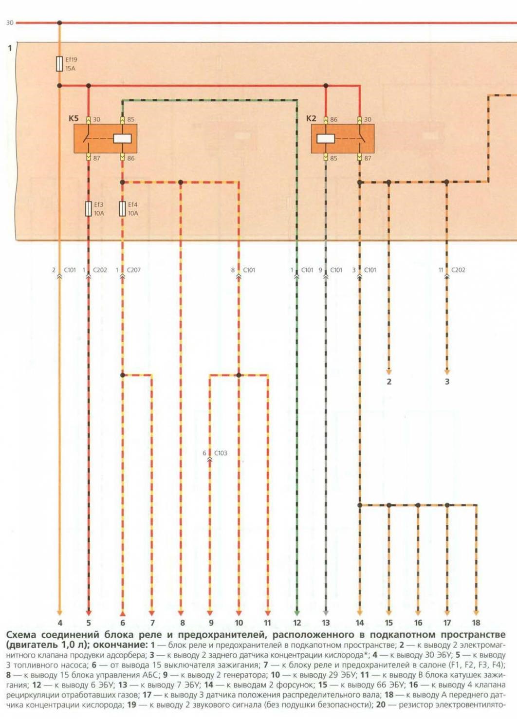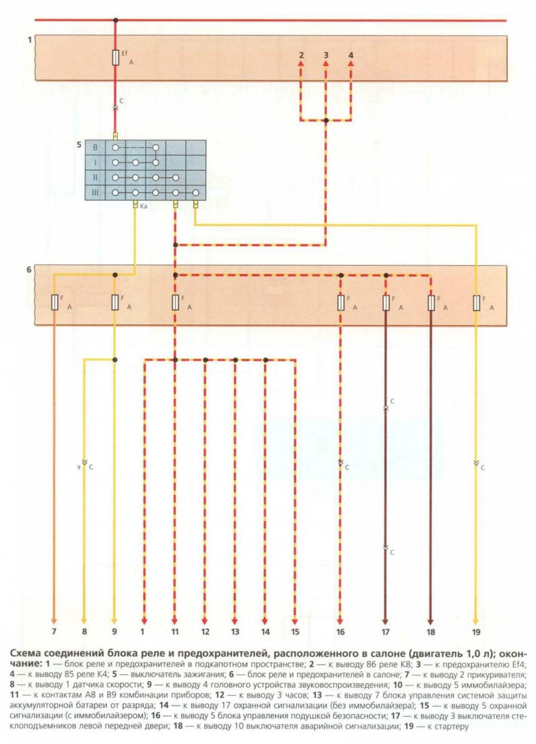 Схема содинения блока реле и предохранителей в межкапотном пространстве