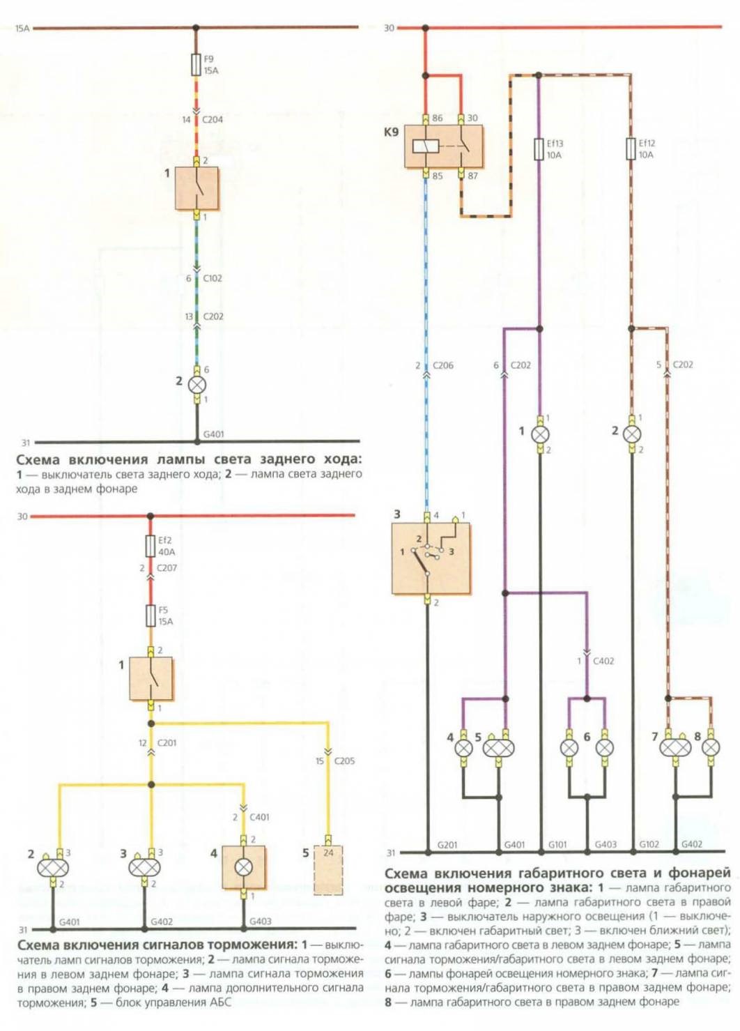 Схема схема включения света лампы заднего хода, сигналов торможения, габаритного света и фонарей освещения заднего хода