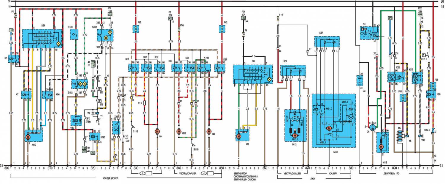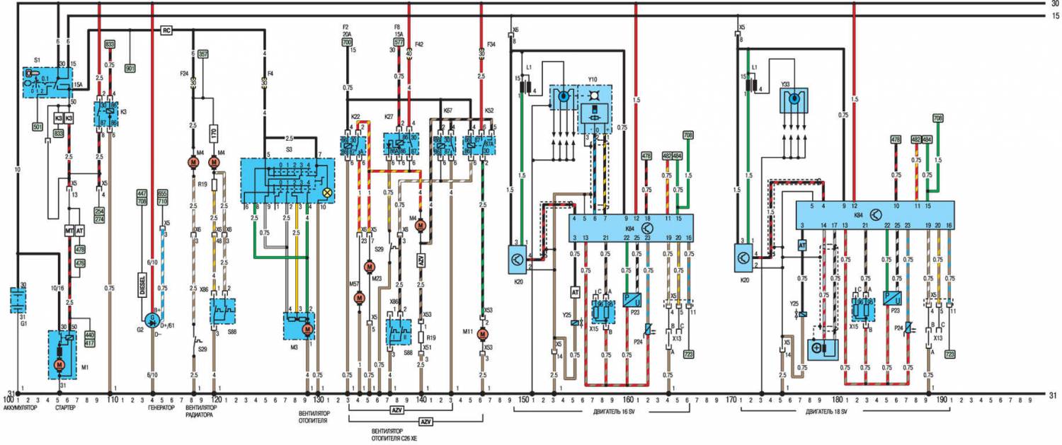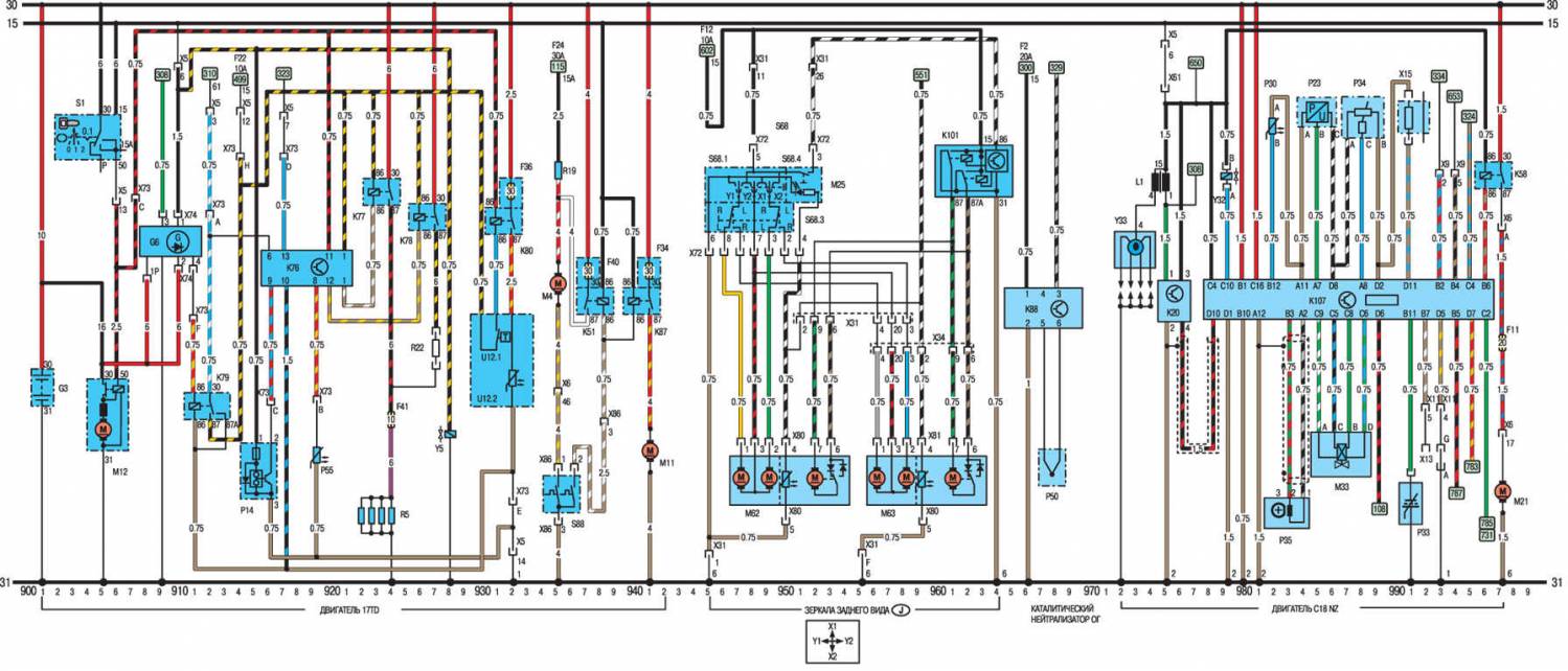 Электросхема автомобиля Opel Vectra А (1988-1995 г.в.)
