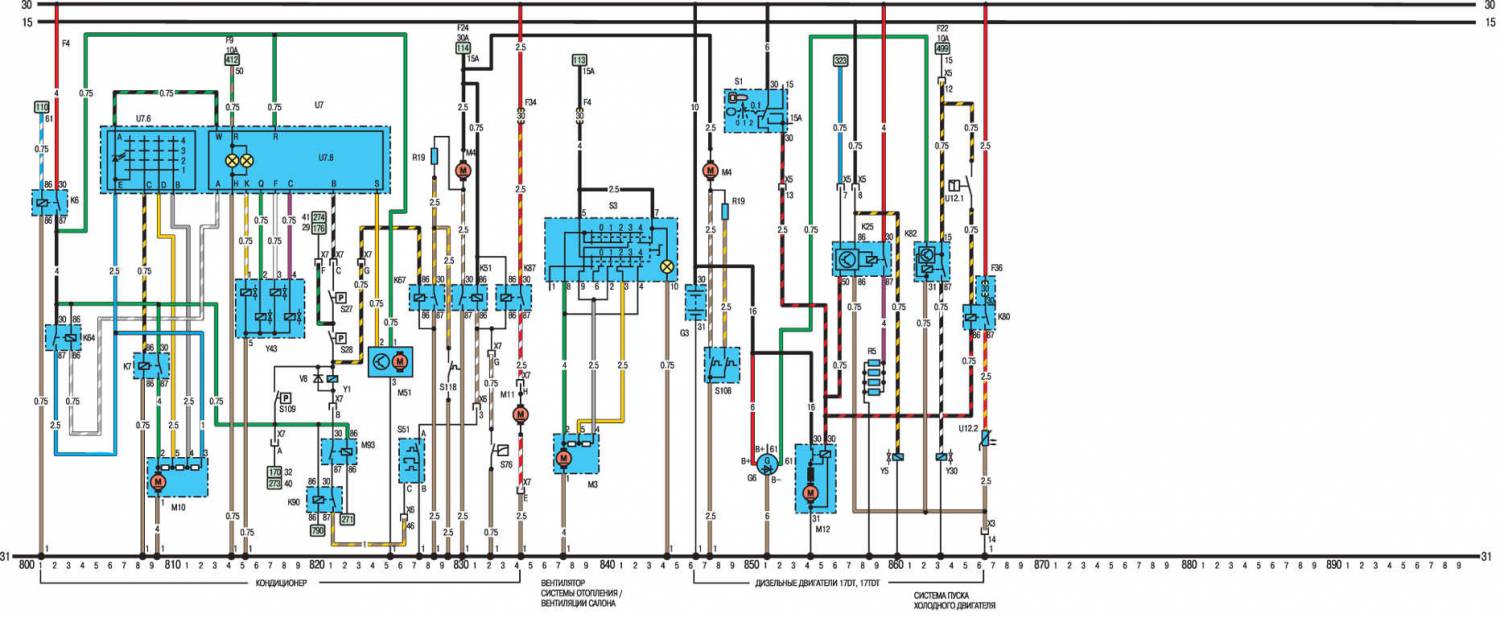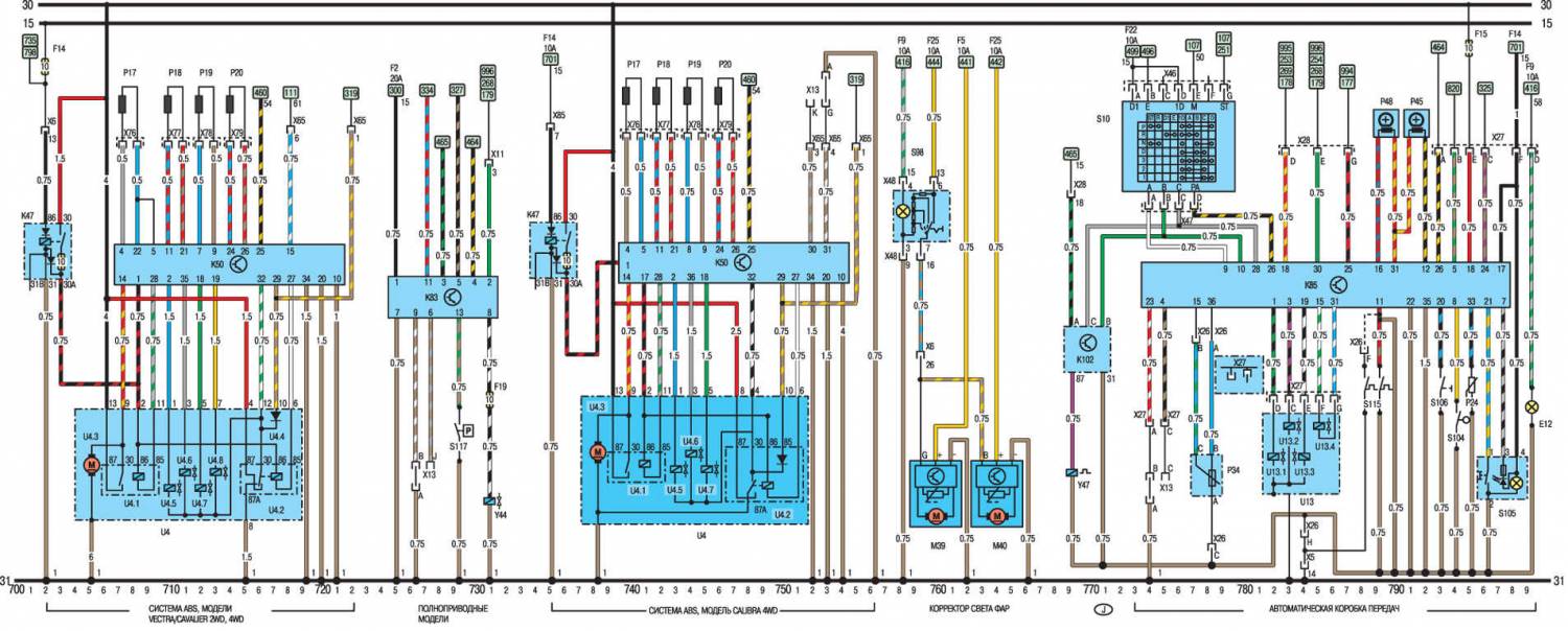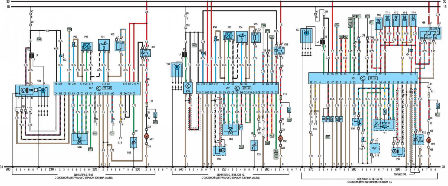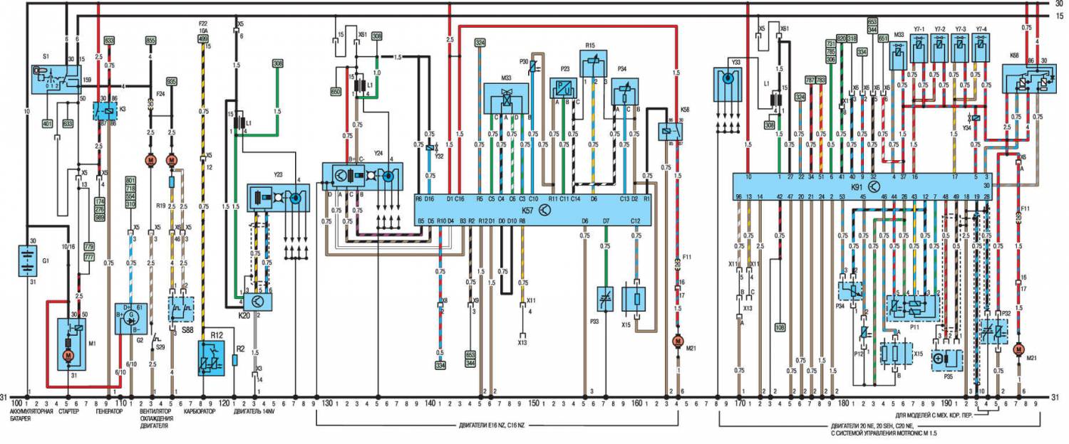 Электросхема автомобиля Opel Vectra А (1988-1995 г.в.)
