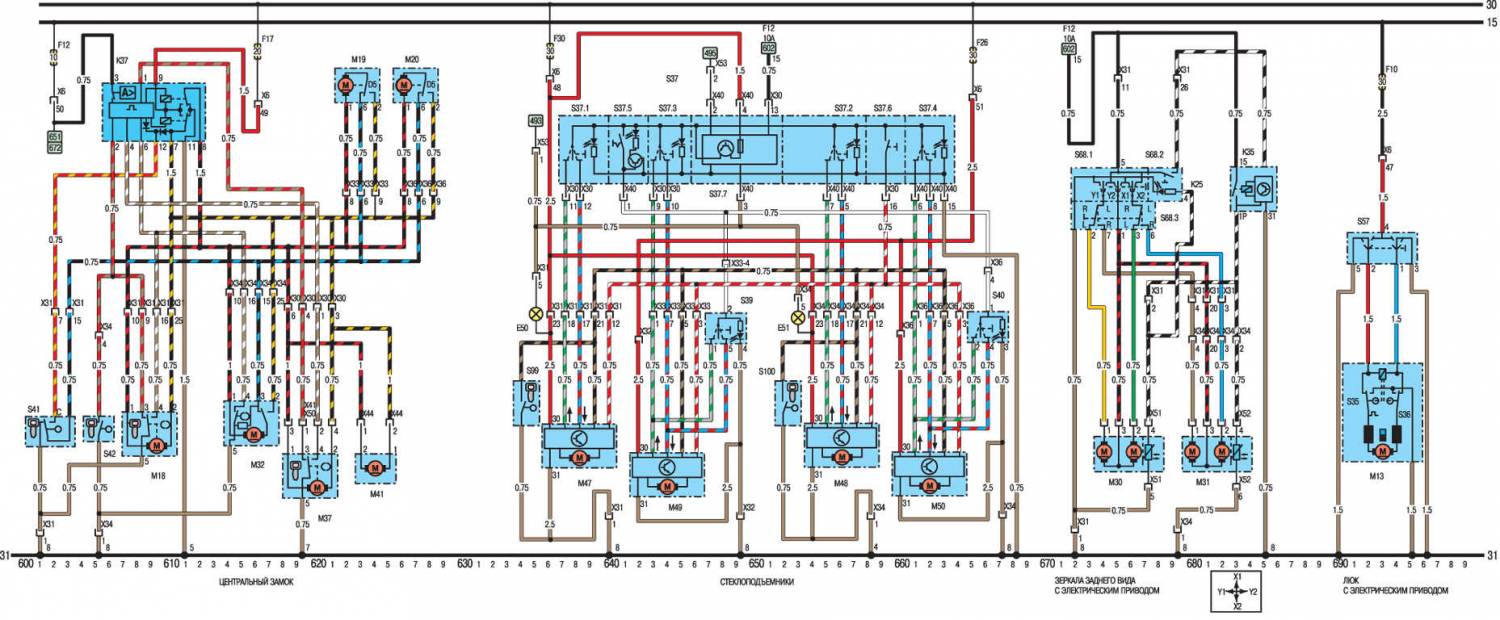 S37.1 Переключатель стеклоподъемников с электрическим приводом передней левой двери 668 – 670