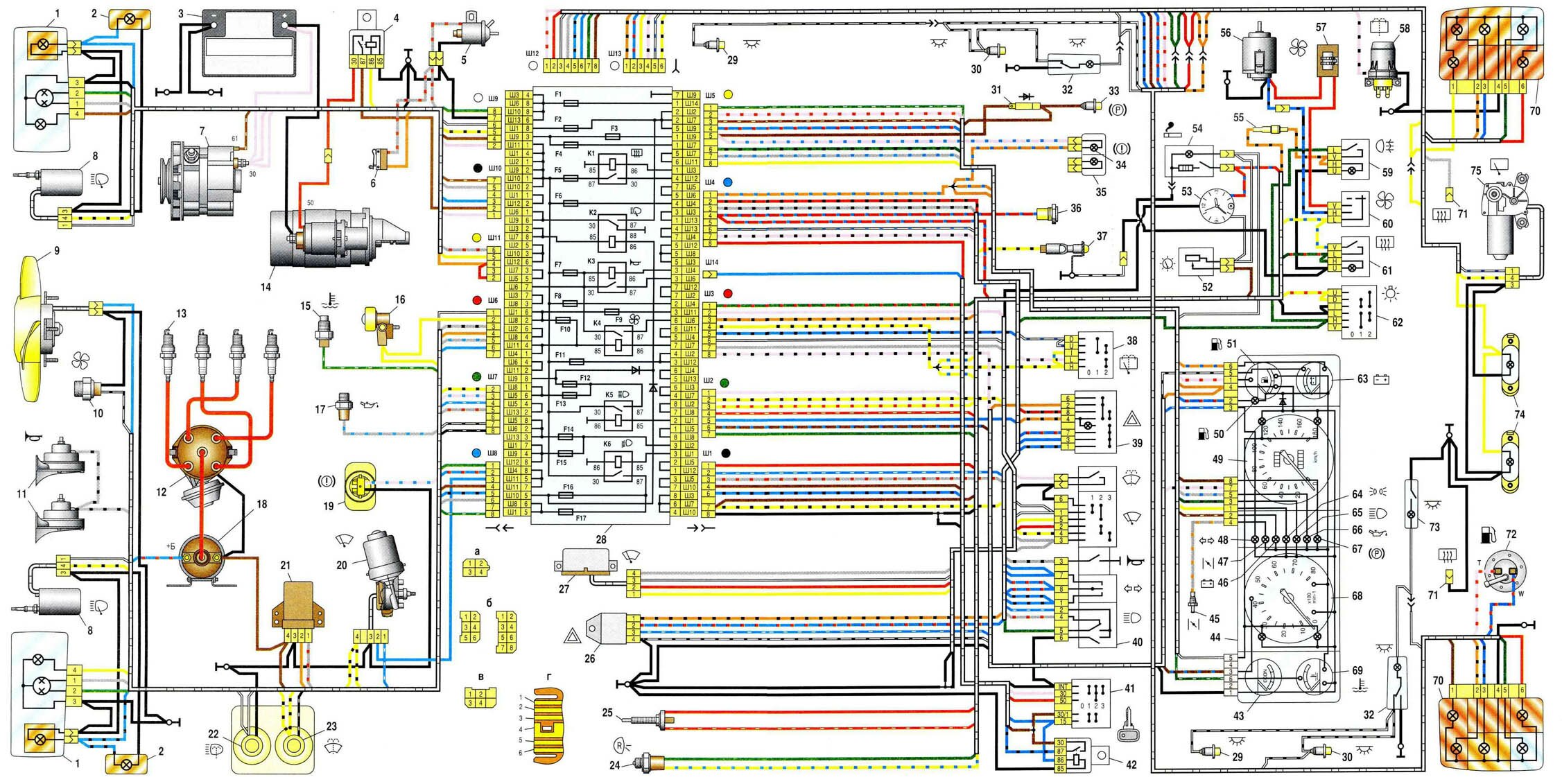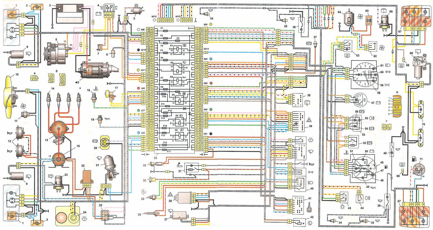 Схема ВАЗ-2104 – электропроводка и блок предохранителей.