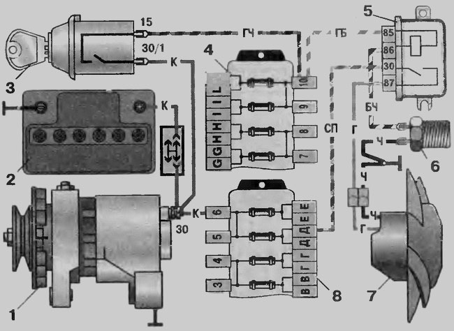 9 — реле включения электродвигателя вентилятора ваз 2106;