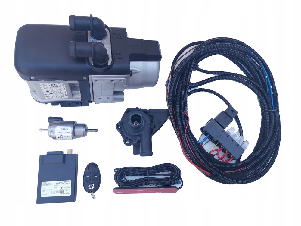 Циркуляция теплоносителя осуществляется по малому кругу. Ее обеспечивает отдельный насос, встроенный в отопитель. Переносимое тепло интенсивно нагревает холодный двигатель и элементы системы его питания. Комплект Webasto представлен: