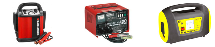 - Пусковое устройство (ПУ) – применяется для быстрого (аварийного) запуска мотора, когда АКБ разрядилась / поломалась или нет возможности ее зарядить. ПУ отличается от ЗУ характеристиками выходного тока: показатели пускового тока в несколько раз выше параметров зарядного тока. При зарядке батареи этим устройством необходимо отсоединить АКБ от бортовой сети, так как в противном случае вся электроника машины может сгореть.