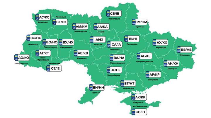 С помощью этой таблицы можно узнать гос номера автомобилей по областям Украины.