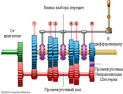 - Система передач. Внутри коробки передач находится система шестерен, которая изменяет передаточные числа для передачи крутящего момента от двигателя на колеса. В зависимости от выбранной передачи, изменяется соотношение между оборотами двигателя и скоростью автомобиля.