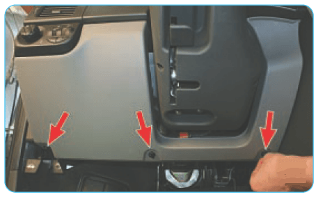 При необходимости вывернуть винт крепления монтажного блока к панели приборов.