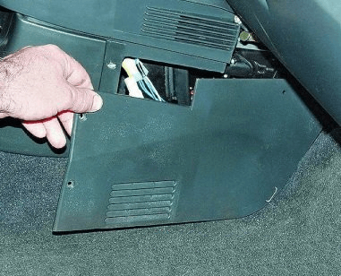 Еще один блок предохранителей в салоне (дополнительный) — находится с правой стороны (стороны пассажира) в нижней части приборной панели. Предохранители и реле этого блока отвечают за систему впрыска топлива.