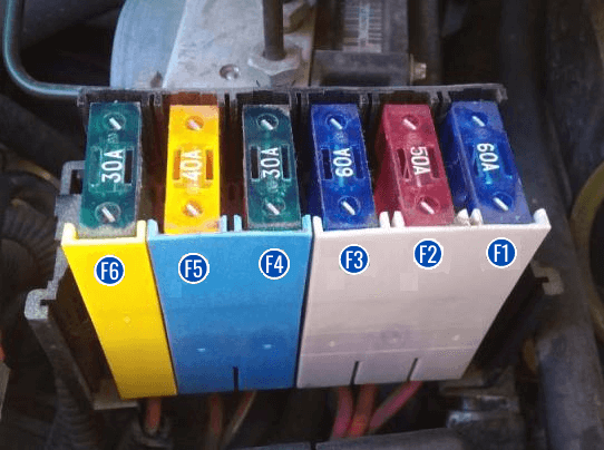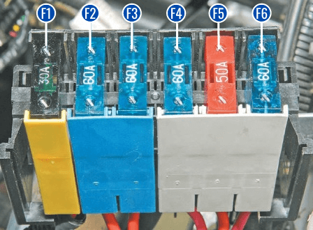 | F3 | 60 А | Генератор (силовая цепь), соединение генератора с аккумулятором (АКБ) |