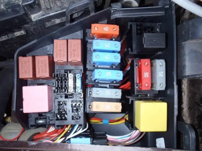 В салоне находится один основной монтажный блок с предохранителями и реле и некоторые модели оснащены дополнительным блоком с реле внутри панели проборов. Основной блок расположен со стороны водителя, сбоку, в торце панели приборов и закрыт пластиковой накладкой.