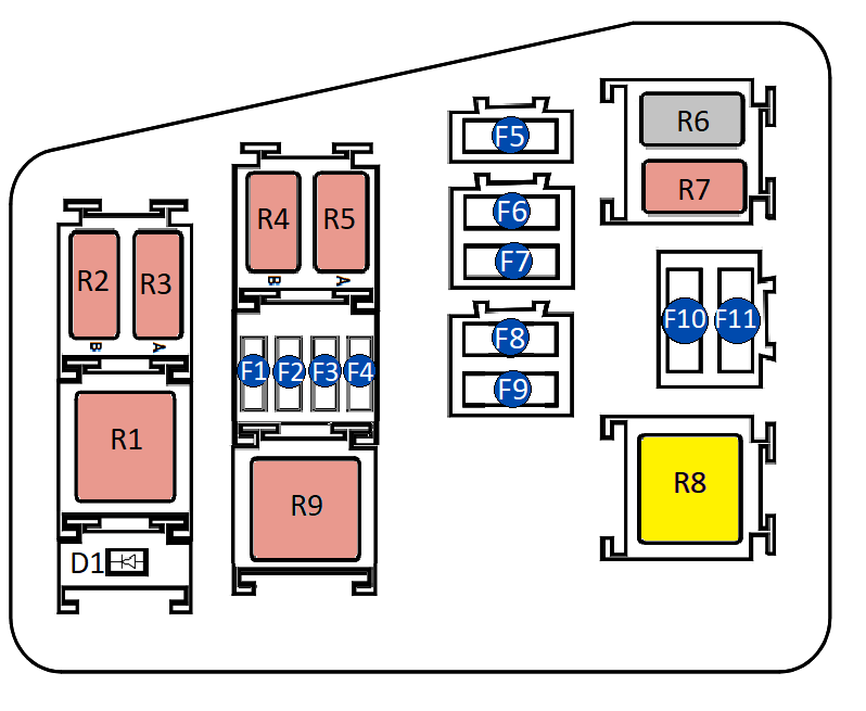 | R9 | Пусто (резервное место под реле); *Реле Стартера (некоторые модели) |