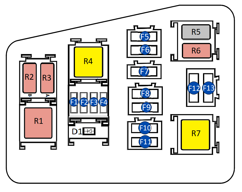| R4 | 40 А | Реле ЭБУ системы впрыска топлива (дизель), Топливный насос (бензонасос) |