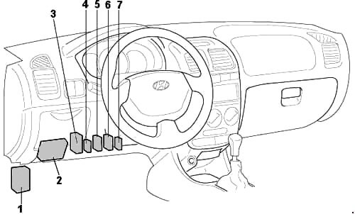 Блоки реле в салоне Хендай Акцент (ТаГаз)