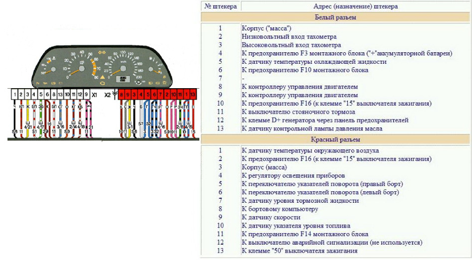 Распиновка панели приборов (щитка) ВАЗ-2113, 2114 и 2115